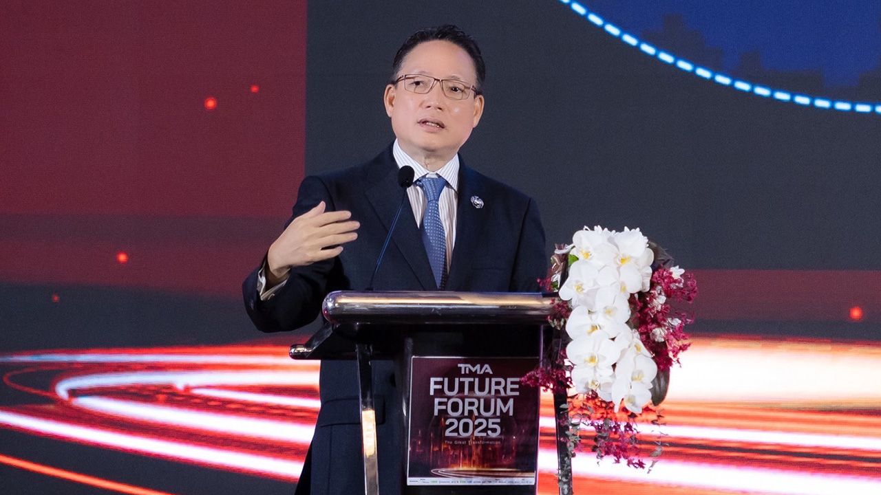 นายผยง ศรีวณิช ประธานสมาคมธนาคารไทย และกรรมการผู้จัดการใหญ่ ธนาคารกรุงไทย เปิดมุมมองการพัฒนาเศรษฐกิจไทยอย่างยั่งยืน “Reinvent Thailand for a Sustainable Future” ภายในงาน “Future Forum 2025 : The Great Transformation” จัดโดย สมาคมการจัดการธุรกิจแห่งประเทศไทย (TMA)